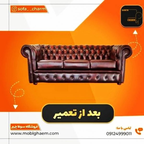نمونه کار تعمیر مبل چستر چرم طبیعی