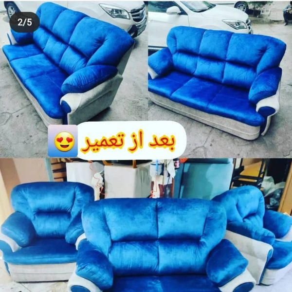 • نمونه تعمیر مبل راحتی با پارچه مخمل آبی