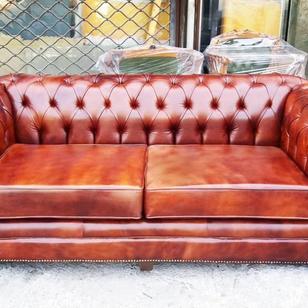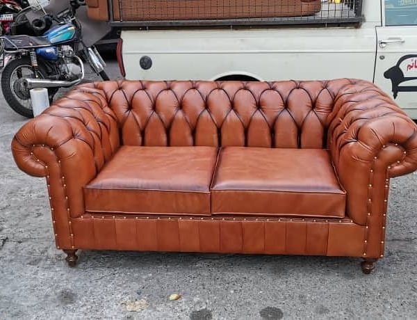 • نمونه تعمیر مبل چستر چرم قهوه ای روشن