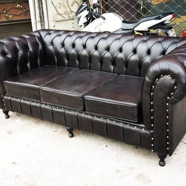 • نمونه تعمیر مبل چستر 3 نفره چرم مشکی